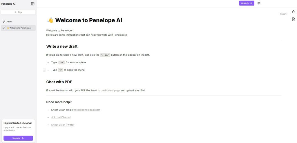 Essayez Penelope AI pour améliorer la qualité de vos écrits. Découvrez comment cette IA peut transformer votre productivité en proposant des solutions efficaces adaptées à vos besoins spécifiques.